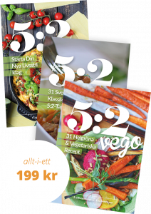 Om du fortfarande tycker att det är komplicerat att räkna ut kalorierna så finns mina e-böcker om 5:2 som innehåller massor av kaloriberäknade 5:2-dieten recept. E-böckerna hittar du här.