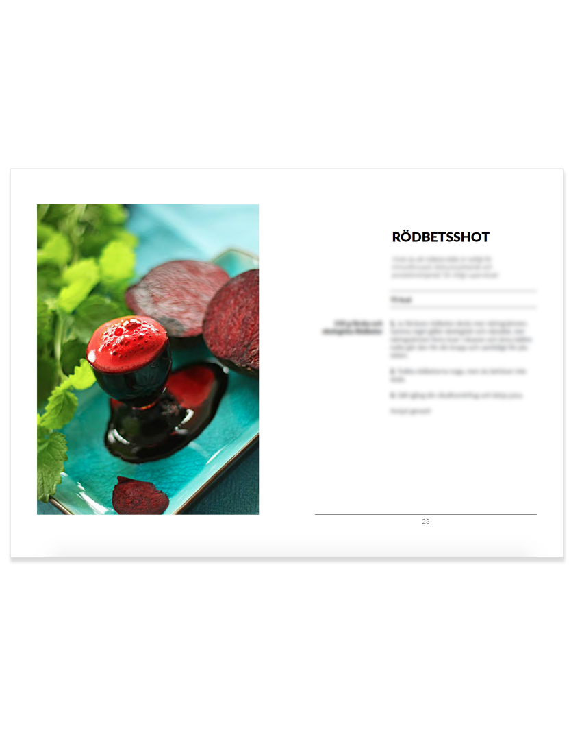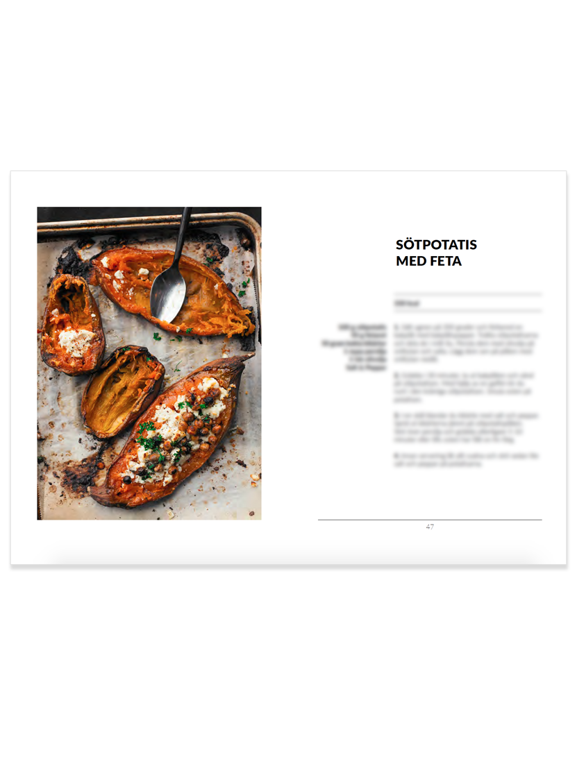 Ladda ner den elektroniska-boken till läsplattan, mobilen eller datorn. Med den smarta innehållslistan kan du lätt navigera och klicka dig fram och tillbaka. Sitt i soffan och läs i lugn och ro. När du sedan ska laga mat kan du ställa upp din enhet i köket och ha receptet framför dig. Om du hellre vill ha något fysiskt är e-boken anpassad för att skrivas ut.